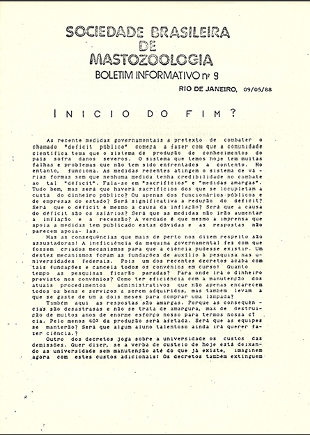 Aqui estão disponíveis para download todos os números do BolSBMz, desde sua criação até 2020. A partir de 2021 nossa revista passou a se chamar Brazilian Journal of Mammalogy.